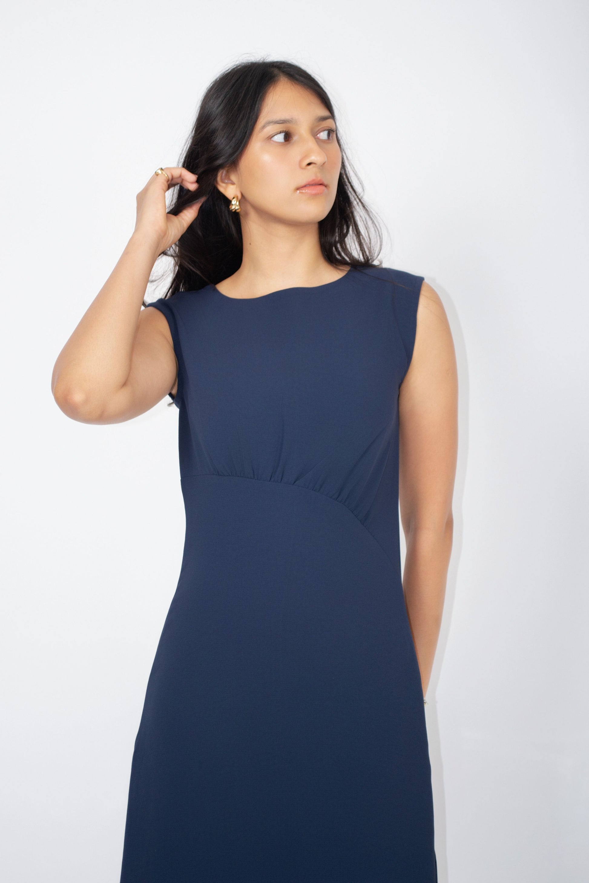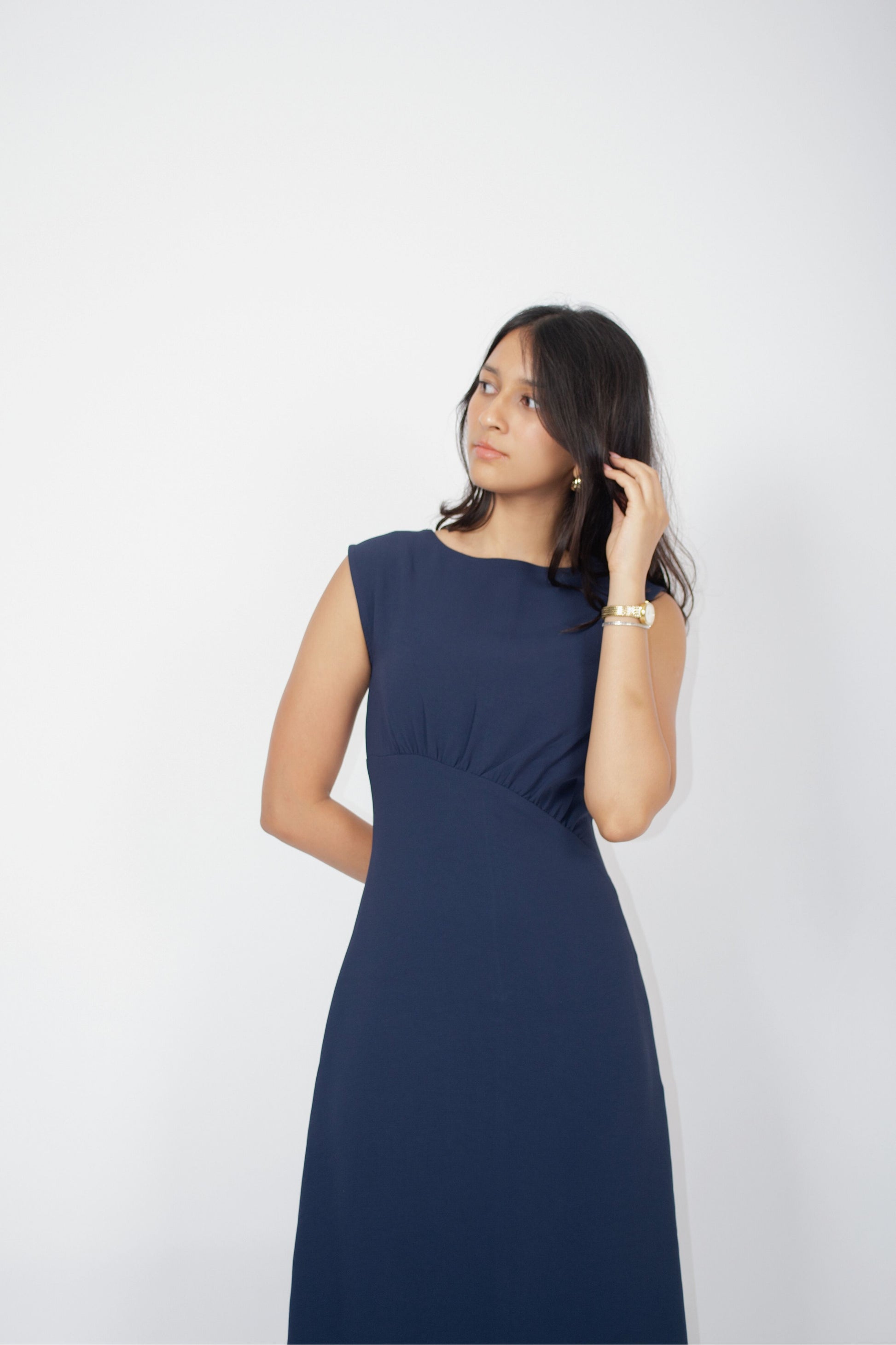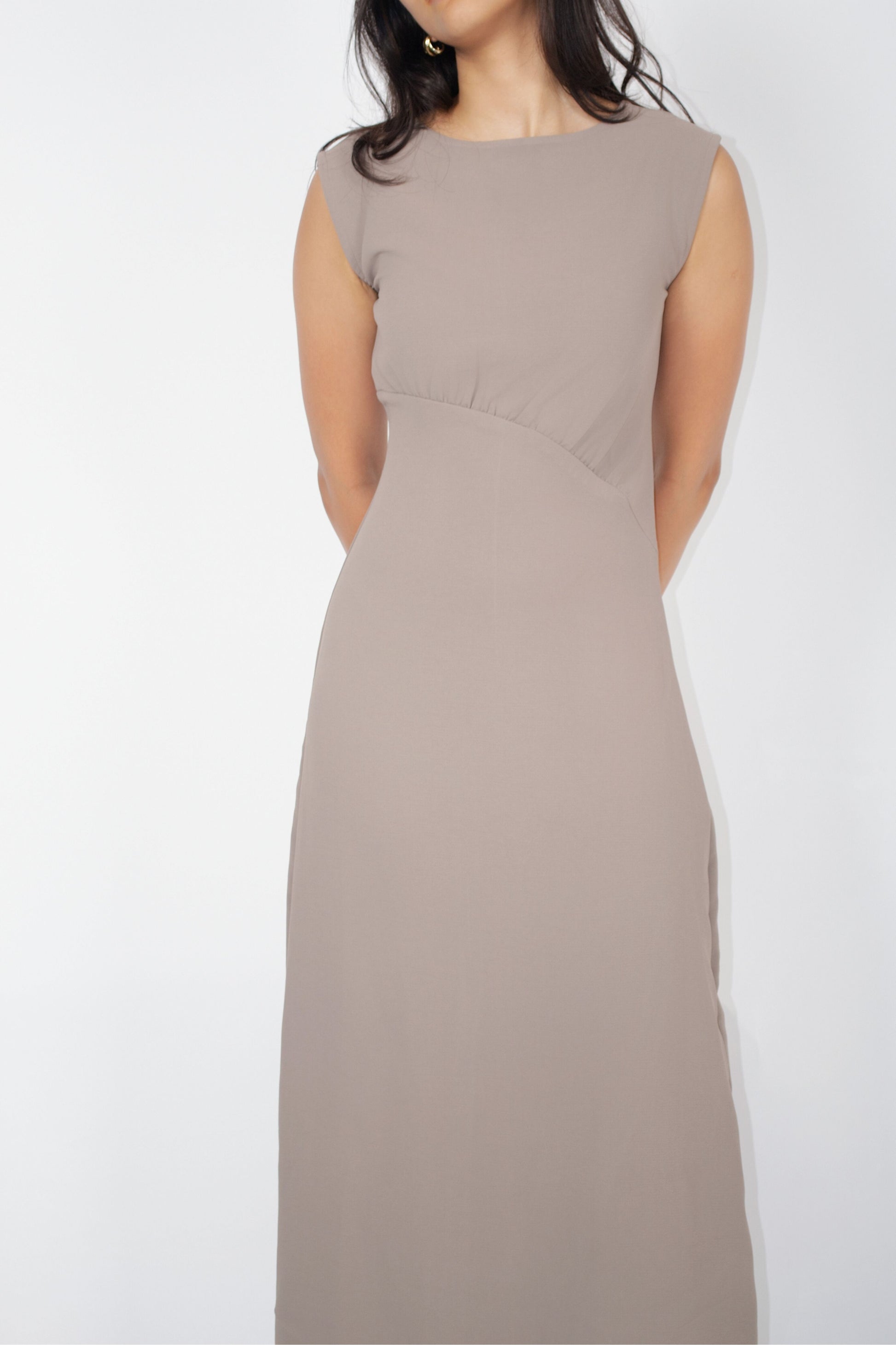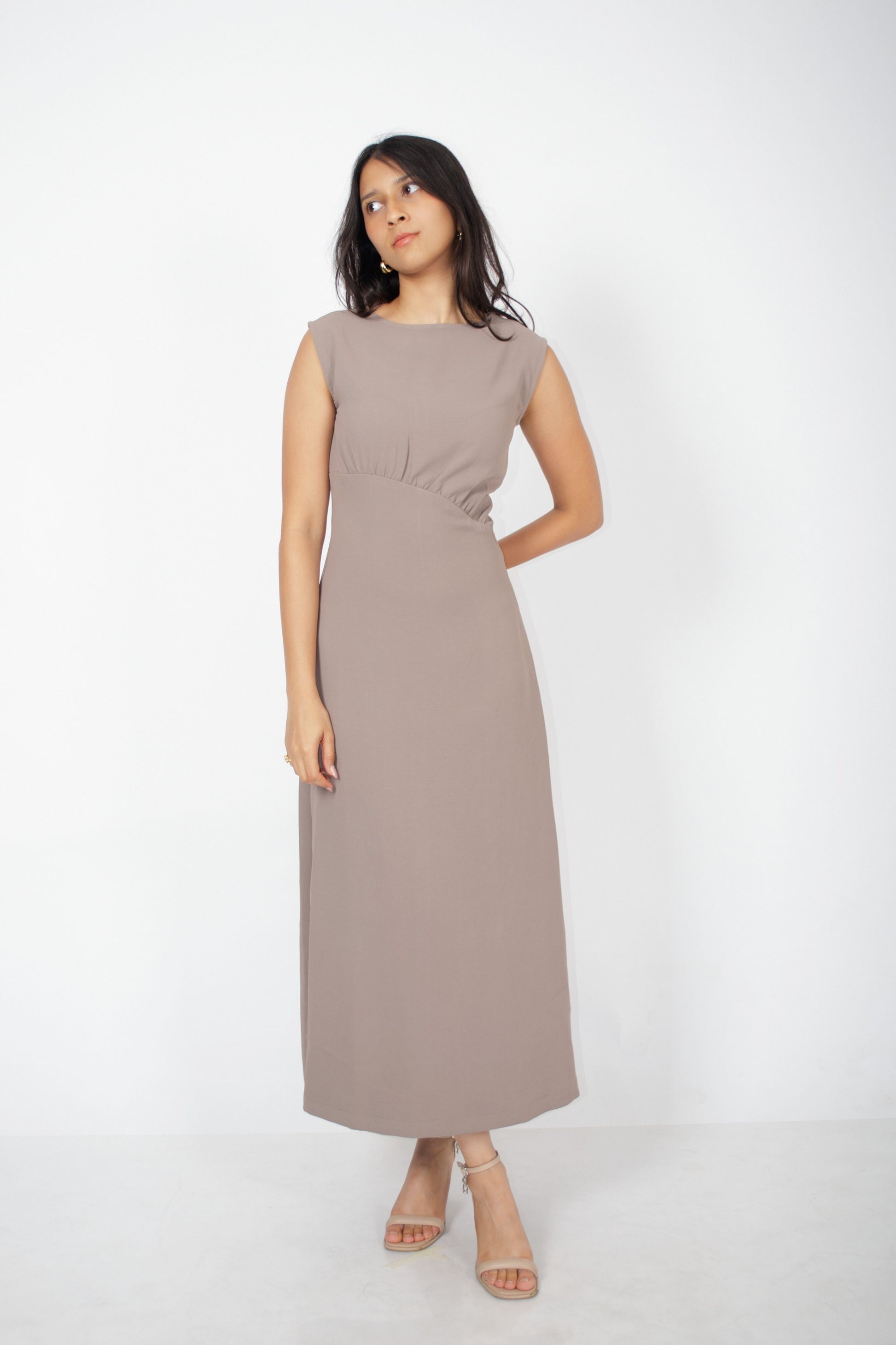 Effortlessly graceful, our Elara maxi dress features a curved asymmetrical detail around the bust that adds a subtle shape to the silhouette. With a soft drape and short sleeves, the CloudCrepe fabric will carry you from boardroom to after hours with comfort and elegance.