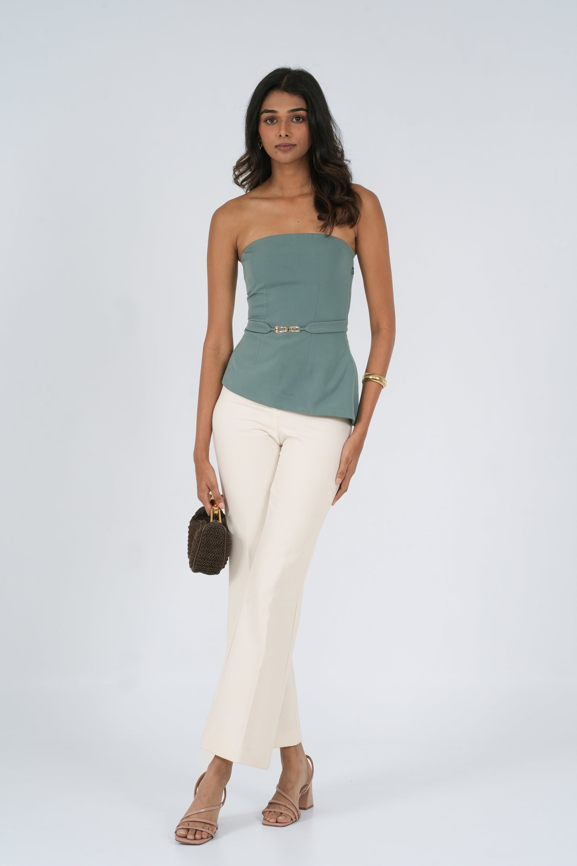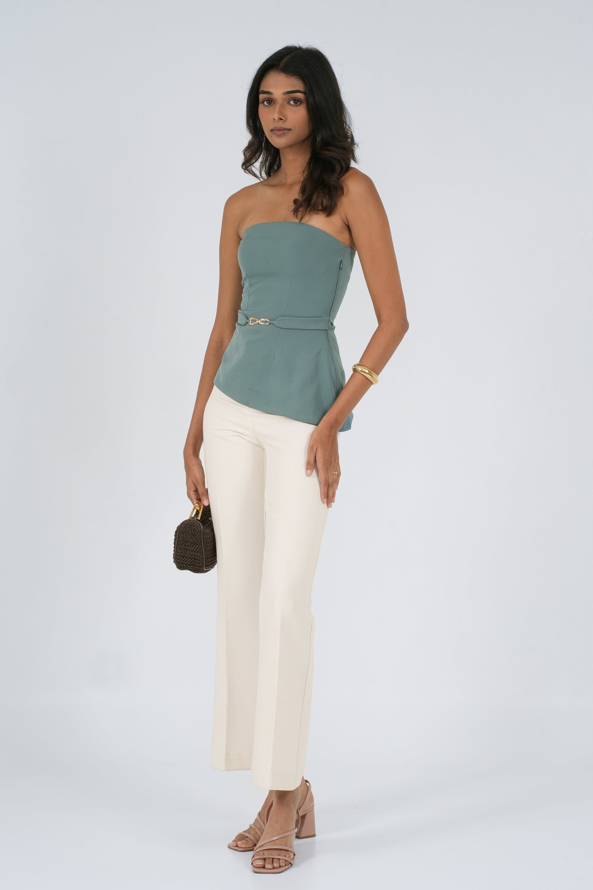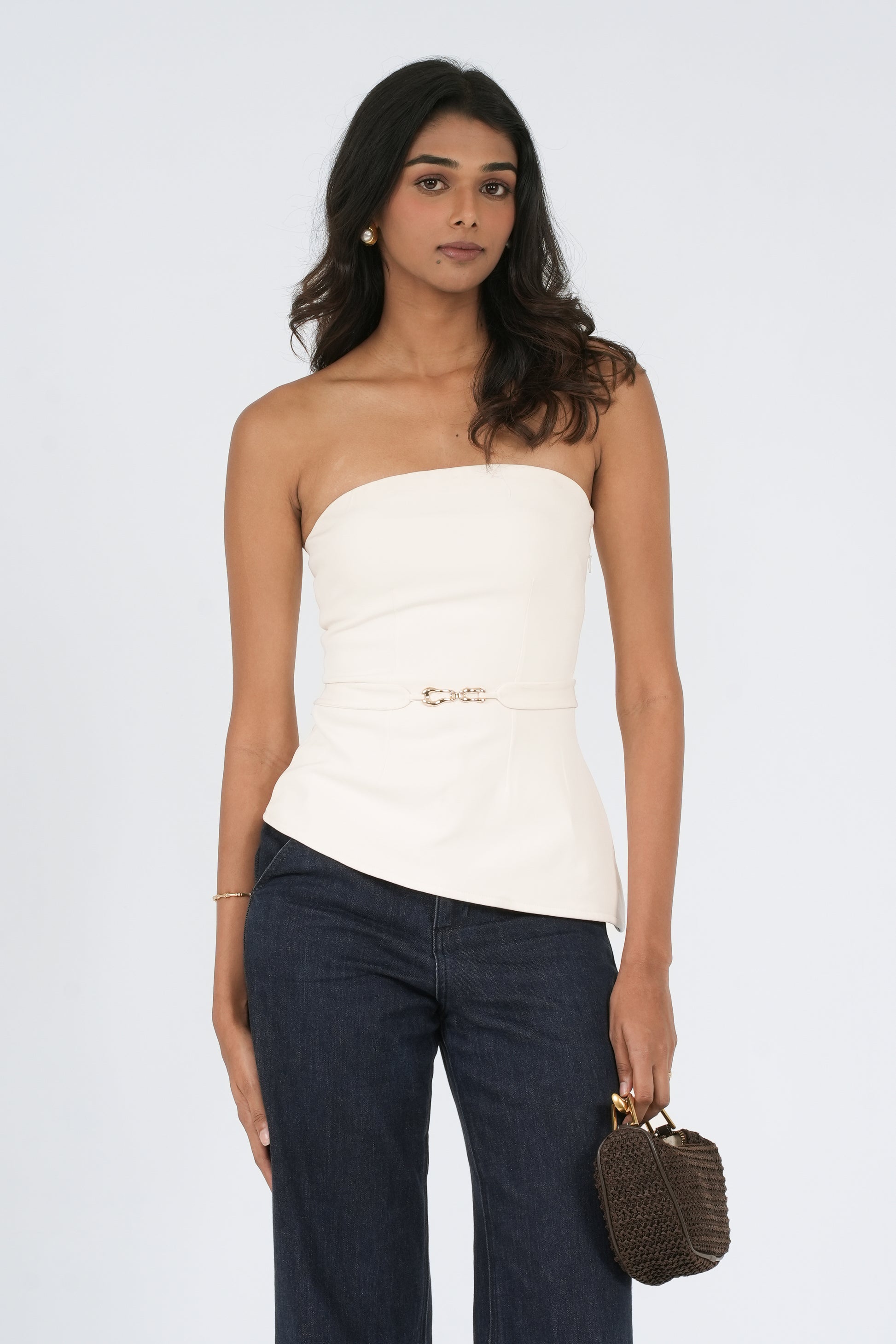 Crafted for presence, our strapless Grace top is the epitome of modern femininity and intentional design. At its core, a sculptural gold hardware detail anchors the look with a hint of edge: elevated, never loud.