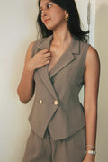 Structured yet feminine, our Noa Double Breasted waistcoat is a sharp essential for the modern wardrobe. Designed with two functional gold buttons and a tailored fit, it’s an effortless choice for office hours, events, and everything in between.