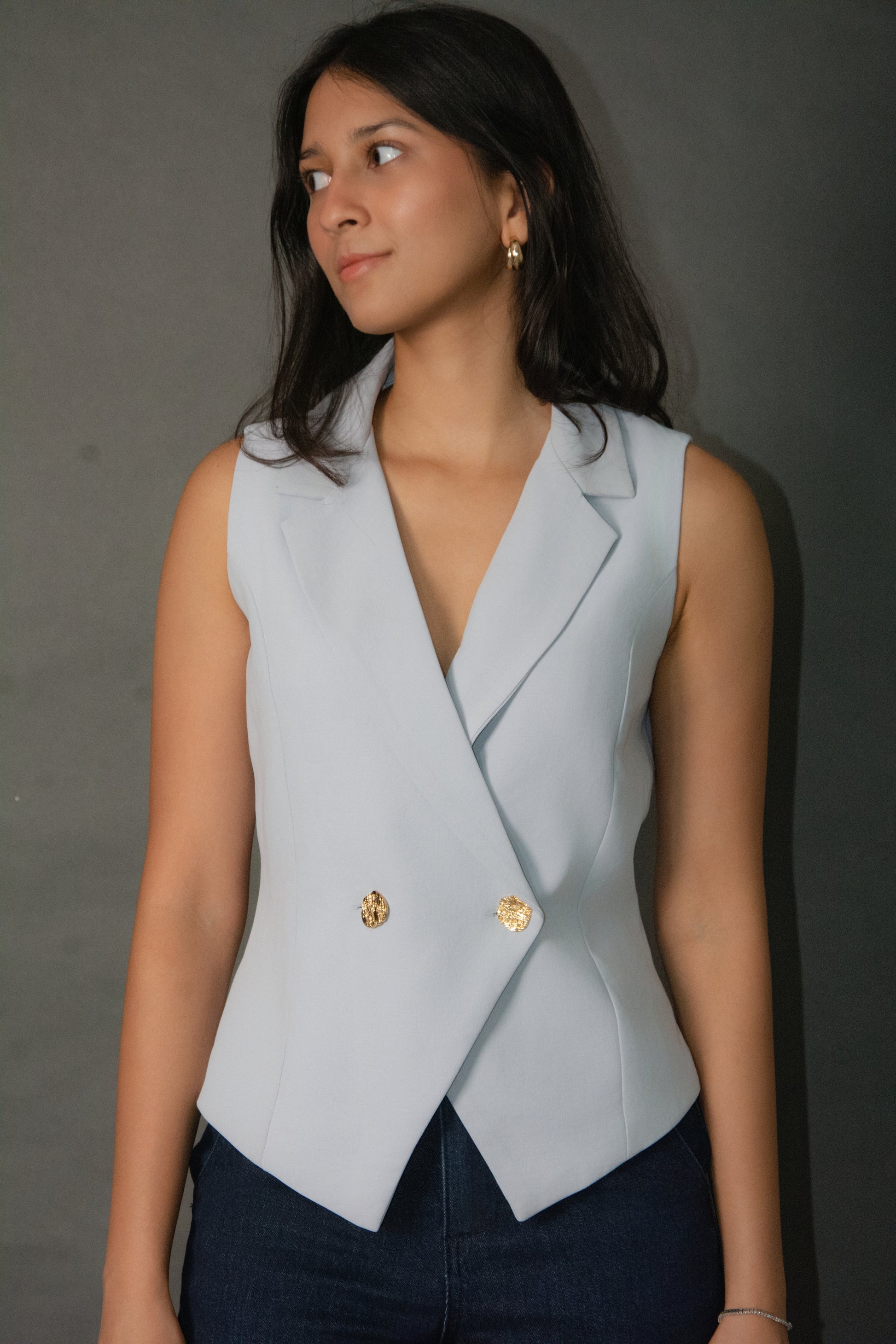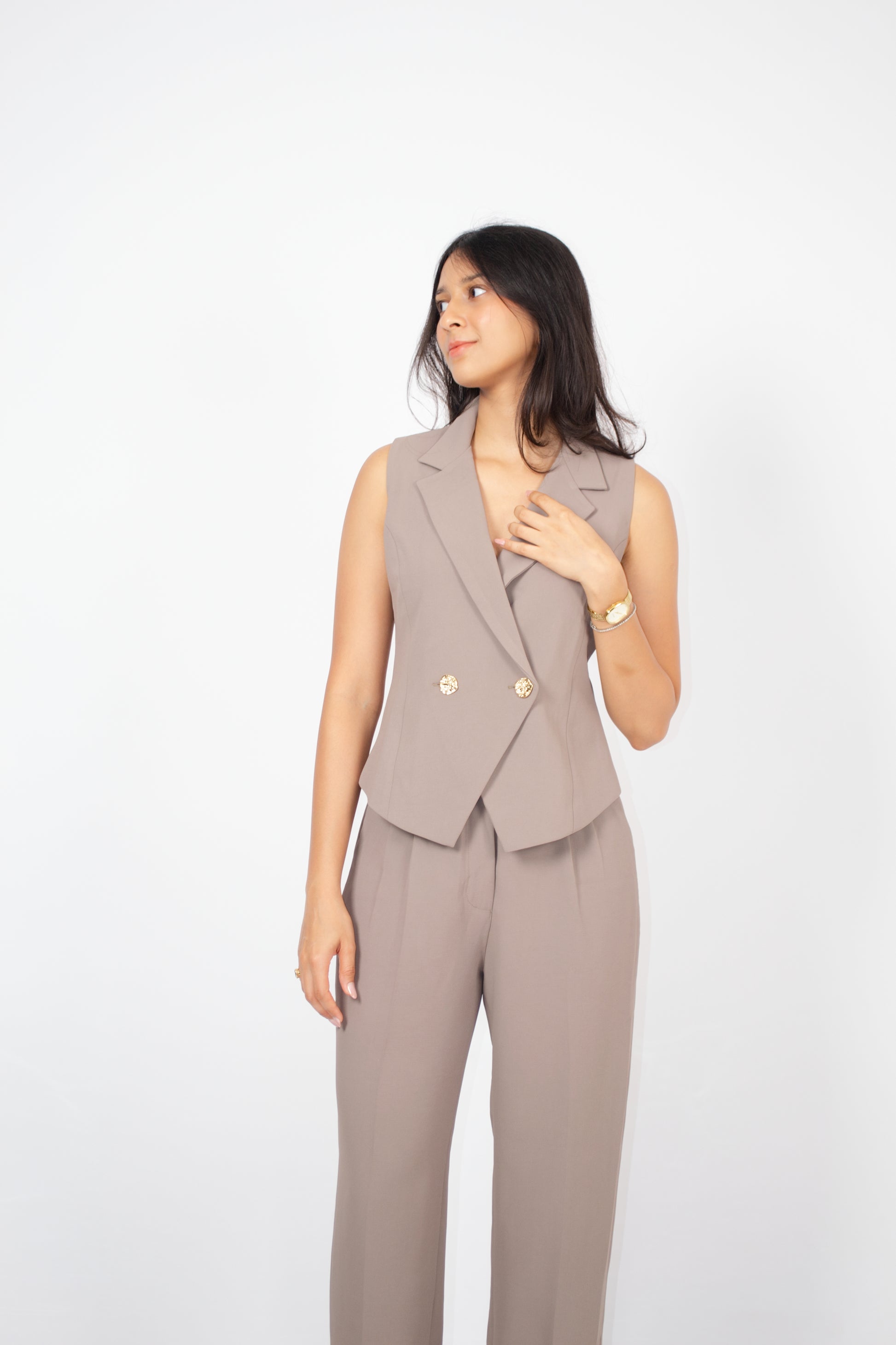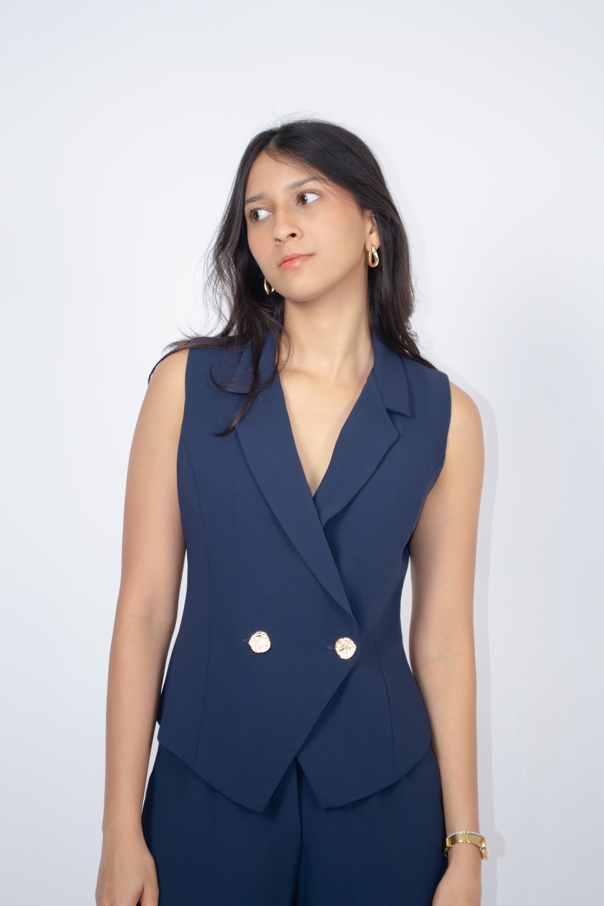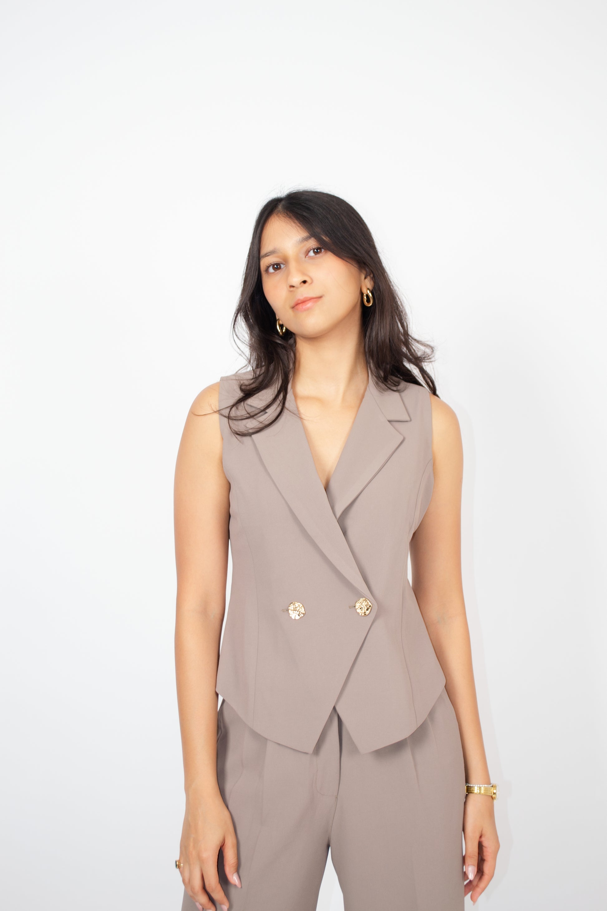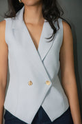 Structured yet feminine, our Noa Double Breasted waistcoat is a sharp essential for the modern wardrobe. Designed with two functional gold buttons and a tailored fit, it’s an effortless choice for office hours, events, and everything in between.