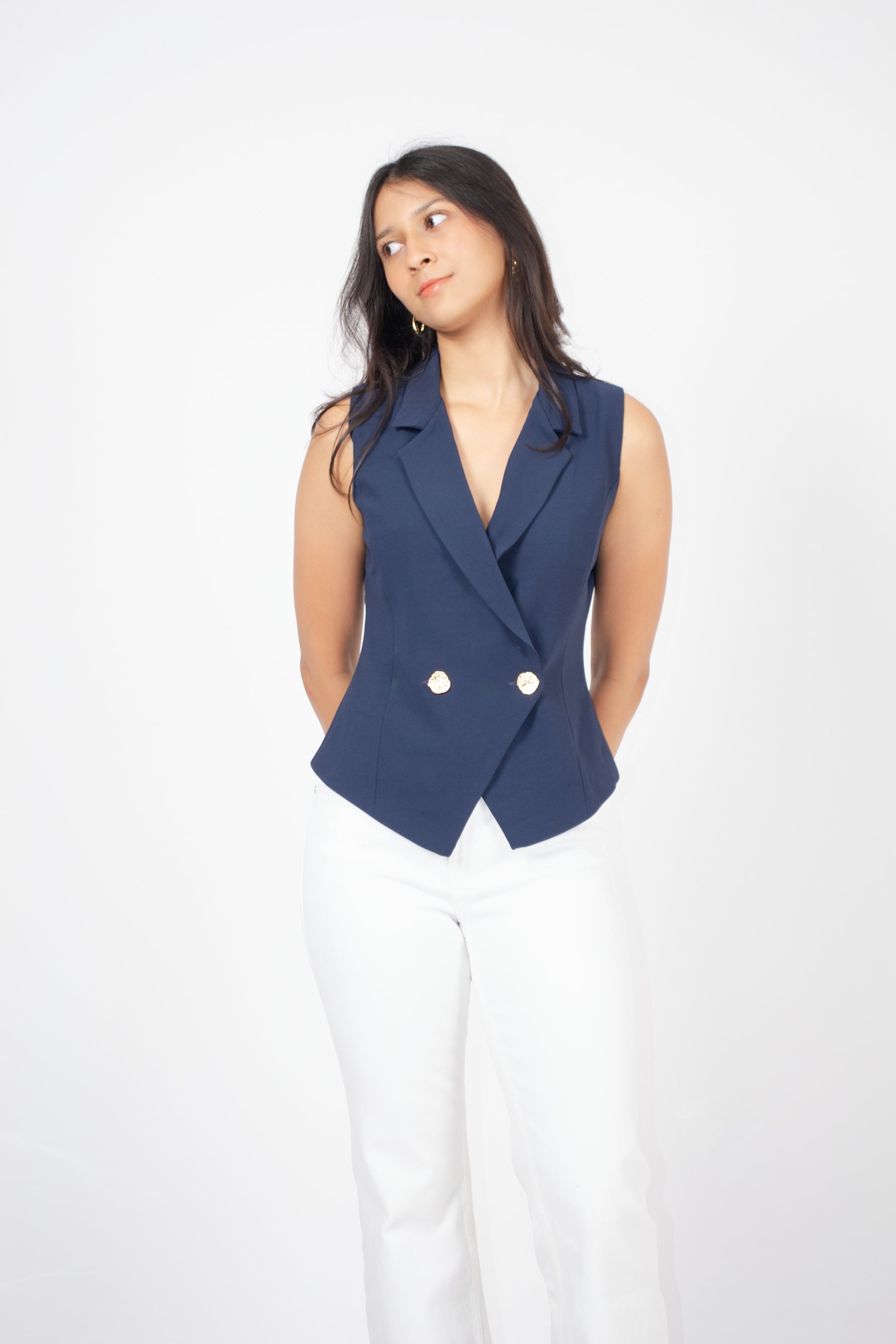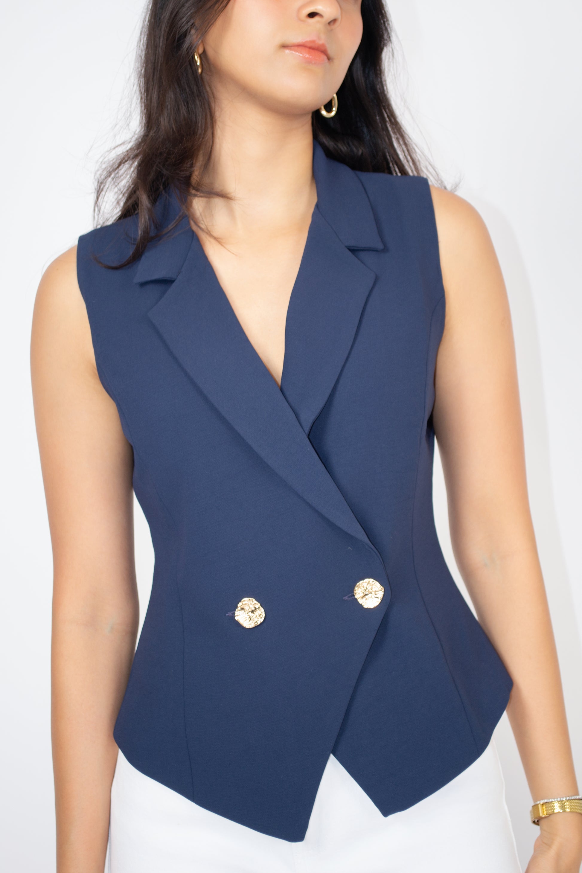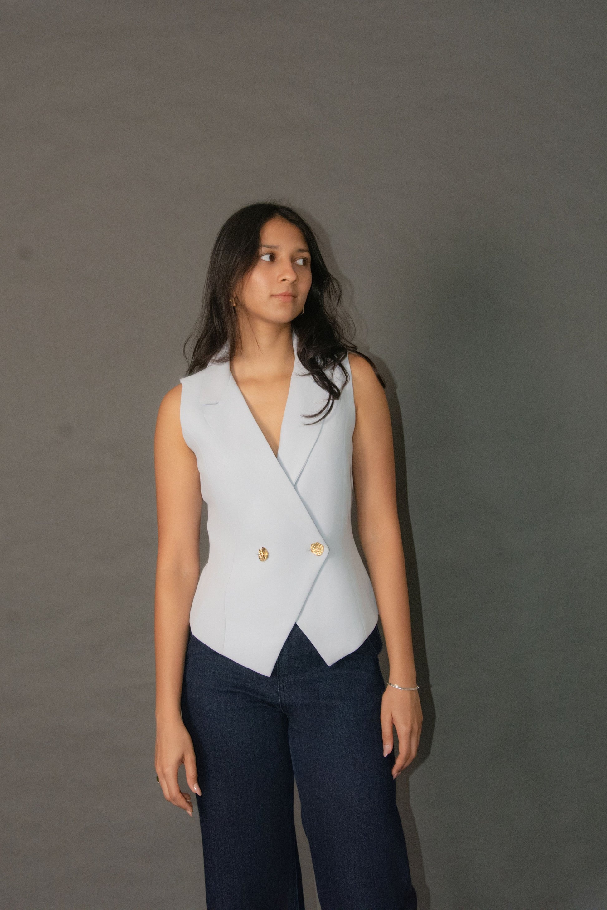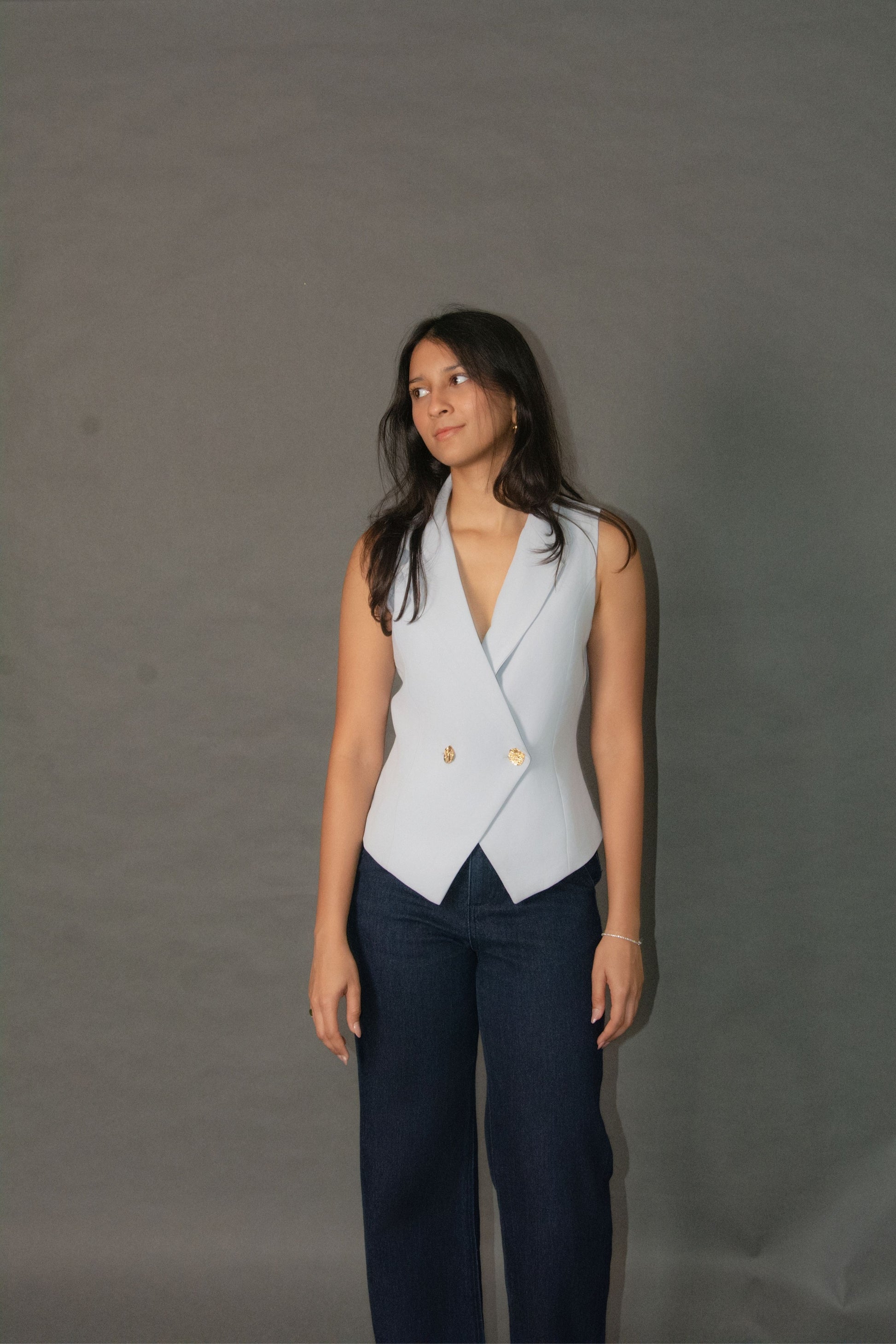 Structured yet feminine, our Noa Double Breasted waistcoat is a sharp essential for the modern wardrobe. Designed with two functional gold buttons and a tailored fit, it’s an effortless choice for office hours, events, and everything in between.