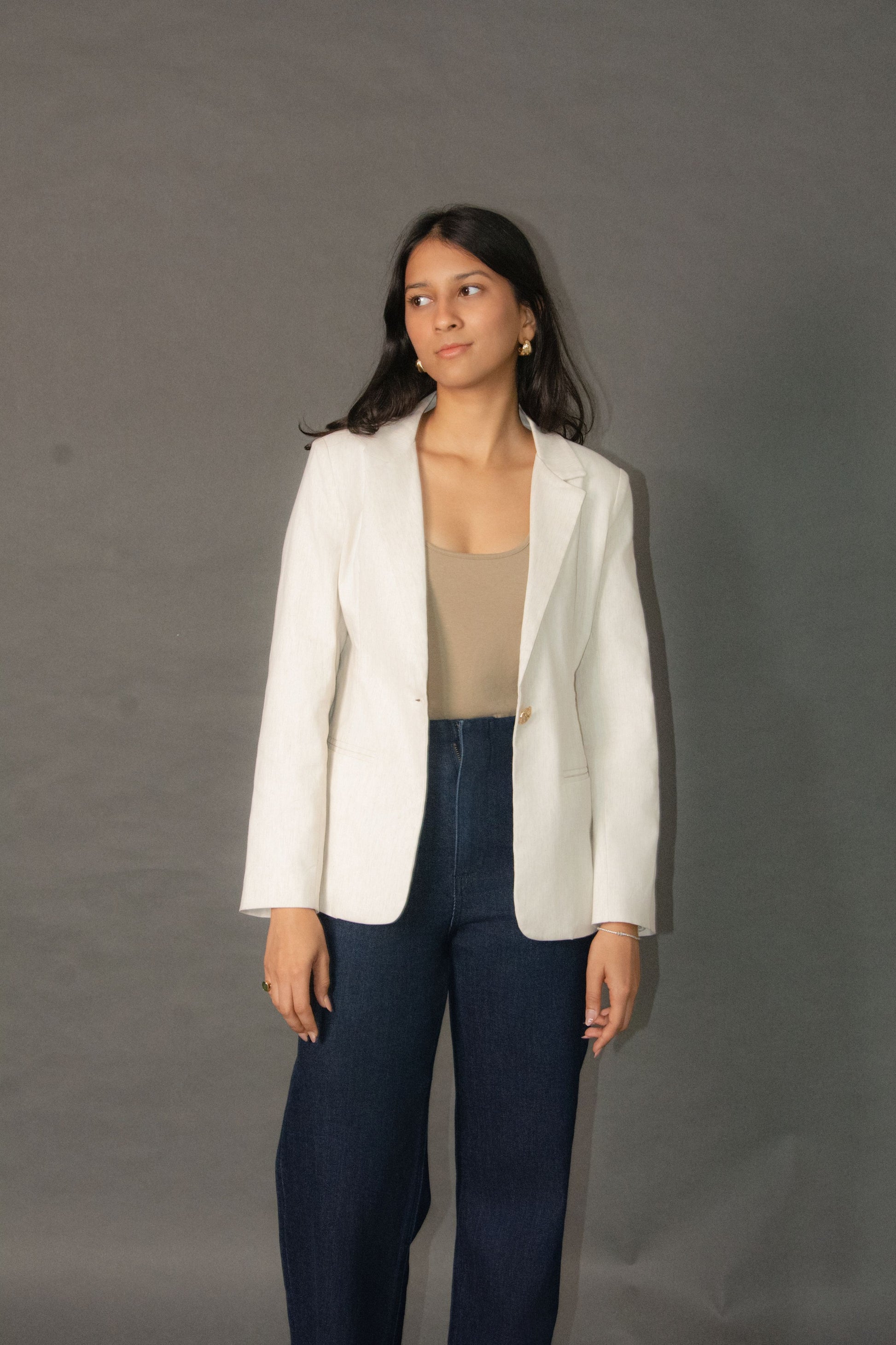 Sleek and sophisticated, our Valencia Blazer features a flattering fit-and-flare silhouette that enhances your natural shape with effortless elegance. Fully lined with luxurious Bemberg satin, it transitions seamlessly from daytime meetings to evening events, whether worn solo or as part of a coordinated set.